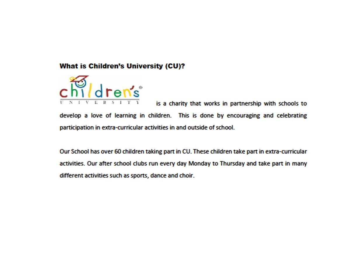 Well done to the 35 children who graduated from Children's University this year for their participation in extra curricular activities and after school clubs. Children can earn a bronze, silver or gold award depending on the number of hours they complete.