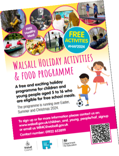 We have already sent out emails out with information on how to  register, but if you need your child’s unique code ( should have had a letter or postcard through the post)  email wr4c@walsall.gov.uk   asking for the  code including your child's name and address or call 01922 653899 for help. For more info visit: www.walsall.gov.uk/children_and_young_people/haf_signup
