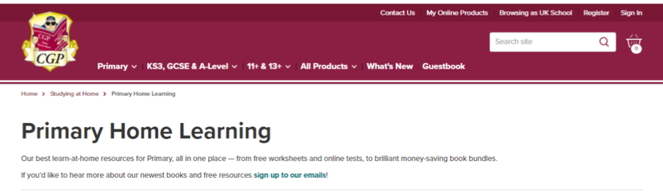 CGP have lots of free maths and literacy resources available on their website. Click on  the picture to take you straight to their free resources page.