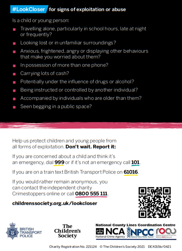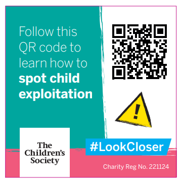 Take a look at the Children's Society #LookCloser webpage for lots of information on county lines,  how to spot the signs and what to do if you are worried about a child or young person.